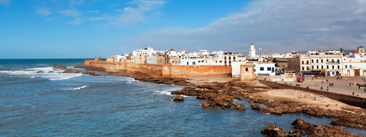 Depuis Marrakech, la route traverse les plaines plantées d’arganiers où vous pouvez apercevoir les fameuses chèvres perchées dans les arbres. À l’arrivée, vous découvrez la médina classée au patrimoine mondial de l’UNESCO, le port de pêche, la sqala et les longues plages balayées par le vent.